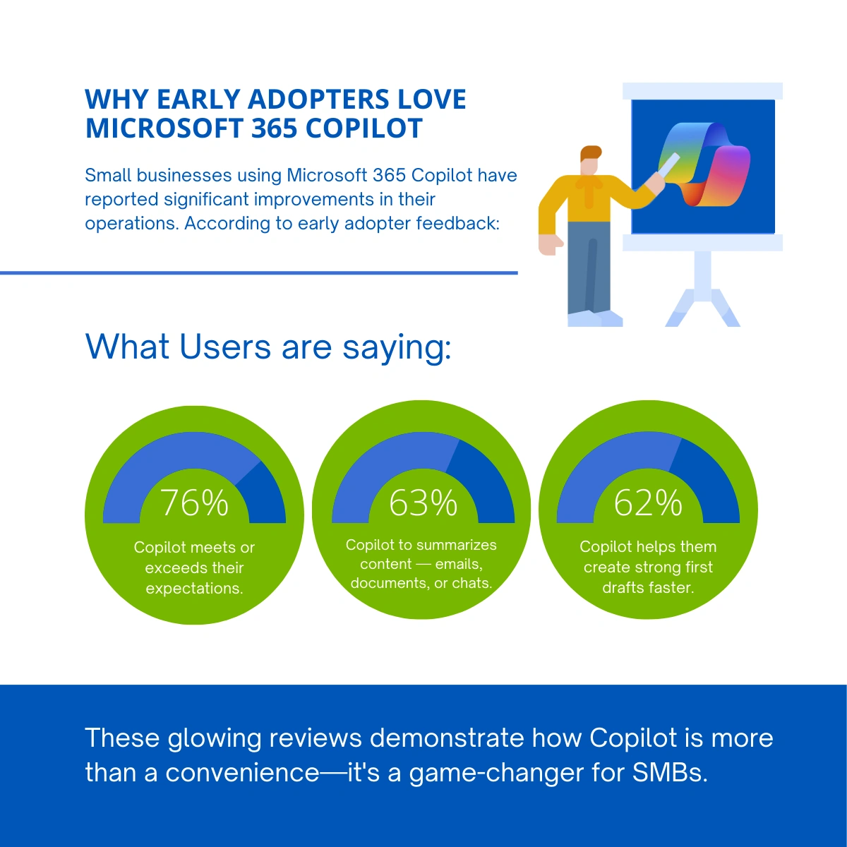 These glowing reviews demonstrate how Copilot is more than a convenience—it's a game-changer for SMBs.