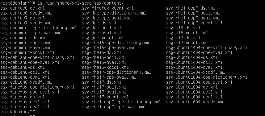 Red Hat Enterprise Linux includes OpenSCAP. Let's see what it contains. The SCAP content provides six files per platform: